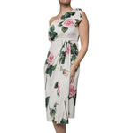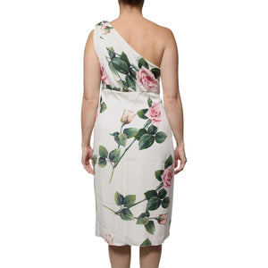 Dolce & Gabbana White Floral Silk One Shoulder Midi Dress