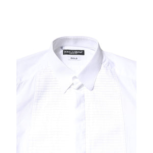 Dolce & Gabbana White GOLD Cotton Poplin Bib Men Dress Shirt