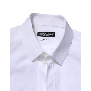Dolce & Gabbana White GOLD Long Sleeve Dress Men Formal Shirt