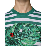 Dolce & Gabbana White Green Stripe Leaf Crew Neck T-shirt