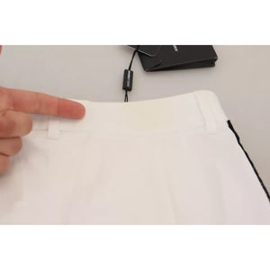 Dolce & Gabbana White Jacquard Cotton Blend Mid Waist Pants