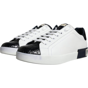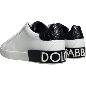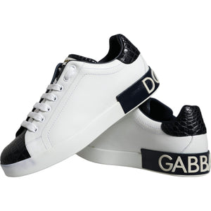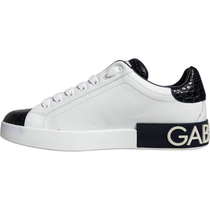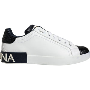 Dolce & Gabbana White Leather Logo Portofino Sneaker Shoes