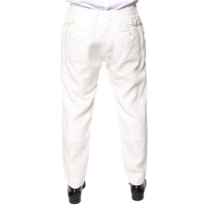 • Dolce & Gabbana White Linen Mid Waist Men Dress Pants