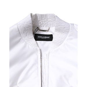 Dolce & Gabbana White Nylon Full Zip Cropped Bomber Jacket