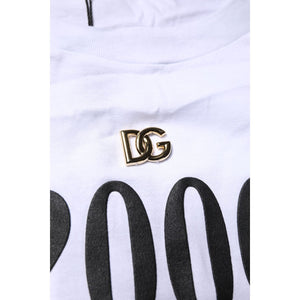 Dolce & Gabbana White Print Lace-Up Cotton Crew Neck T-shirt