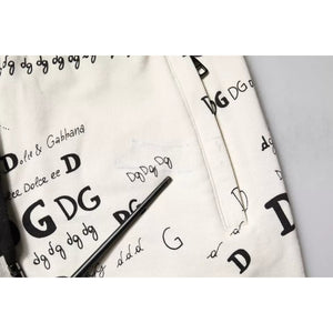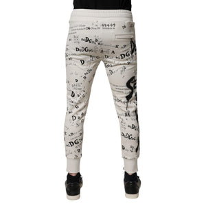 Dolce & Gabbana White Printed Cotton Jogger Sweatpants Pants