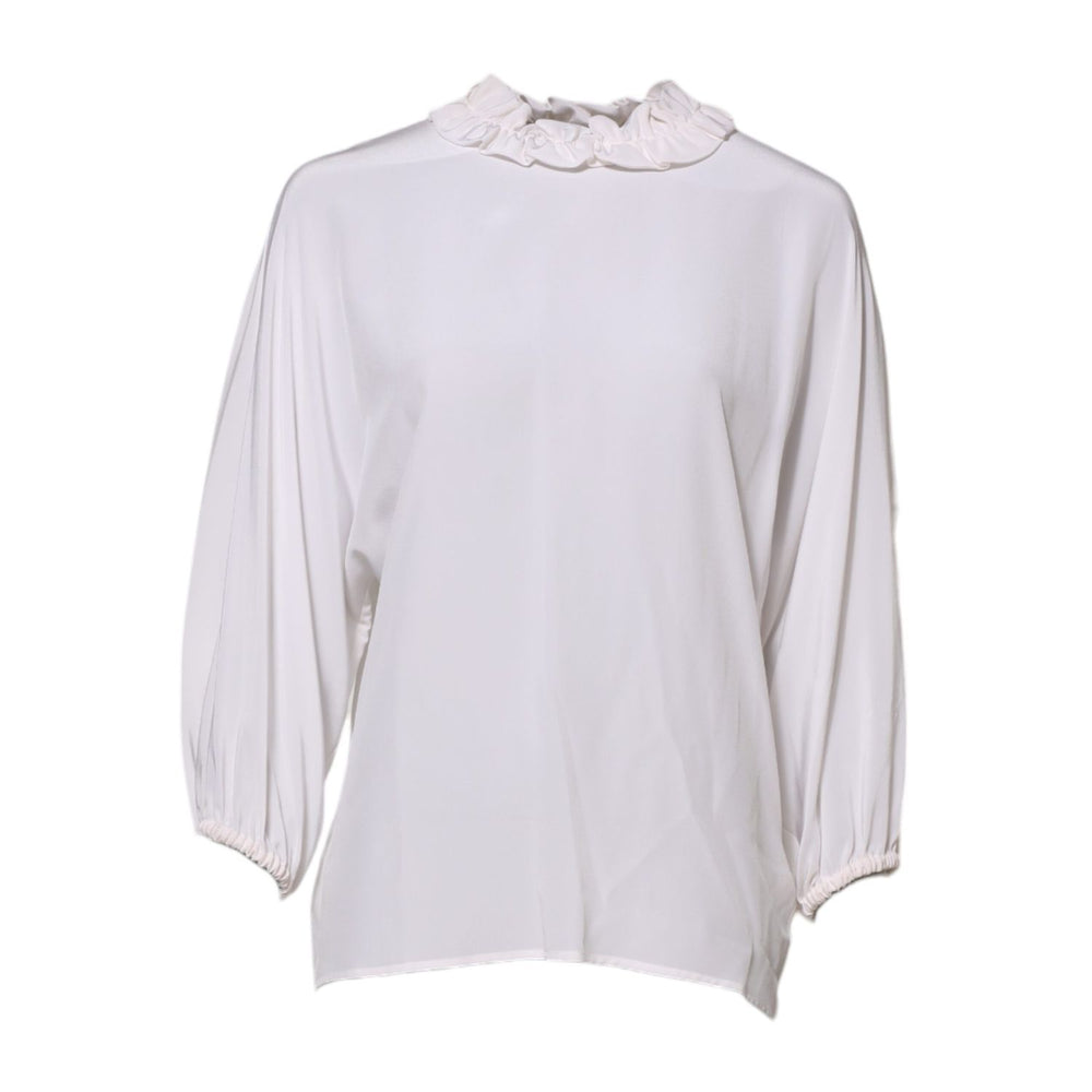 Dolce & Gabbana White Ruffled Neckline Blouse Pullover Top