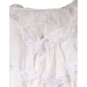 Dolce & Gabbana White Ruffles Lace Long Sleeve Blouse Top