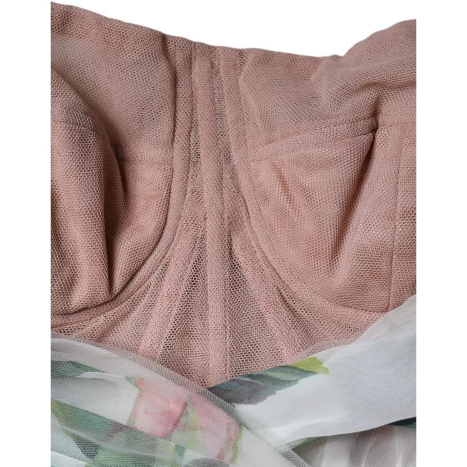Dolce & Gabbana White Silk Floral Print A-line Midi Dress