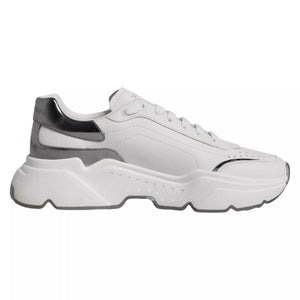 • Dolce & Gabbana White Silver DAYMASTER Leather Sneakers Shoes
