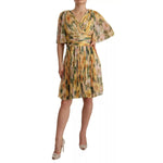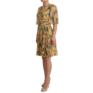 Dolce & Gabbana Yellow Floral Print Pleated Maxi Dress