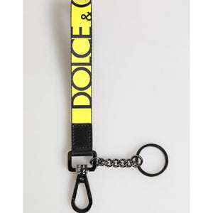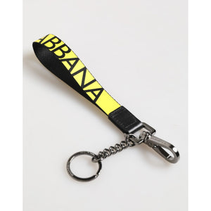 Dolce & Gabbana Yellow Logo Nylon Silver Brass Holder Keychain Keyring