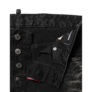 Dsquared² Black Washed Mid Waist Tapered Denim Jeans
