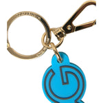 Dolce & Gabbana Blue Rubber Gold Tone Metal DG Logo Keyring Keychain