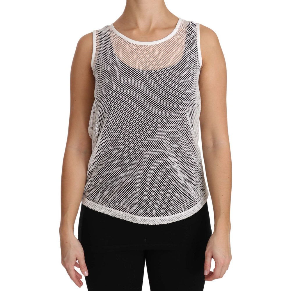 Dolce & Gabbana White Net Transparent Sleeveless Tank Top