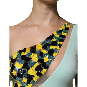 • Elisabetta Franchi Mint Green One Shoulder Long Jumpsuit Dress
