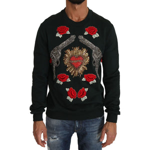 Dolce & Gabbana Green Crystal Heart Roses Gun Sweater