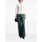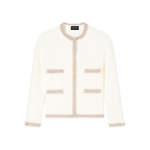 white fringe trim welt pockets round neck Crewneck blazer jacket