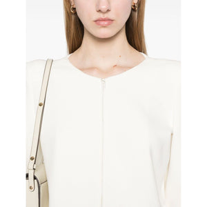white front two-way zip fastening shoulder pads two side slit pockets press-stud fastening cuffs Cotton blazer jacket Size and Fit - This piece fits true to size. We recommend you get your regular size. Model is 1,75m / 5ft 8in wearing size 40 (IT)