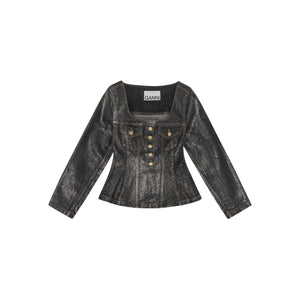 two chest flap pockets Denim cotton blazer jacket