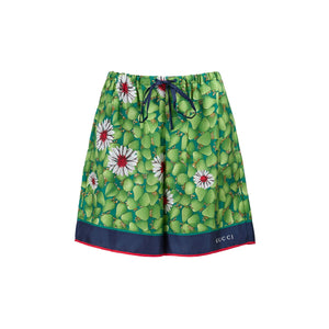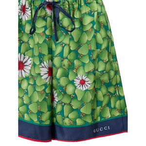 Gucci Green Flower Printed Silk Shorts