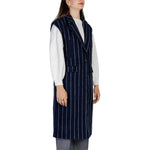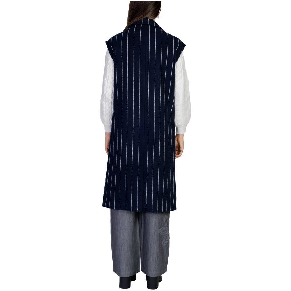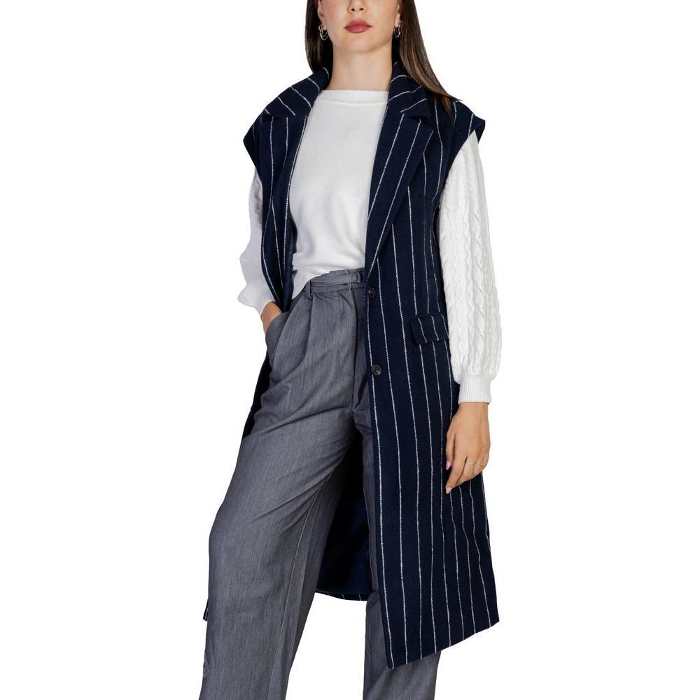 The ICHI IHJANNET PINSTRIPE WA 20121868 women’s sleeveless coat combines elegance and comfort in a modern silhouette. Crafted from a premium blend of polyester, viscose, cotton, polyamide, wool, and acrylic, it ensures a soft and comfortable fit, perfect for transitional seasons. The longline design features wide lapels and a front button closure, enhancing the feminine shape while adding sophisticated appeal. Side flap pockets provide both style and practicality, and the refined vertical pinstripe pattern elongates the figure. This versatile piece is ideal for both casual chic looks and more formal occasions, offering style and functionality throughout the day.