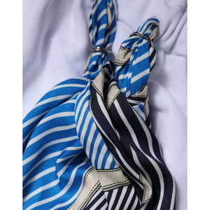 MSGM White Cotton Belted Long Sleeves Crew Neck Mini Dress