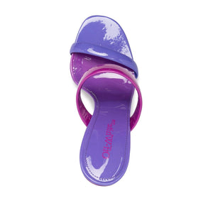Shade Meteor 120mm leather mules from OFF-WHITE featuring fuchsia pink, purple, calf leather, patent finish, ombré effect, open toe, round toe, high block heel, signature Meteor cut-out detailing and slip-on style. Shade Bulky mules Size and Fit - Heel 4,7 in / 12 cm; Platform 0,6 in / 1,5 cm