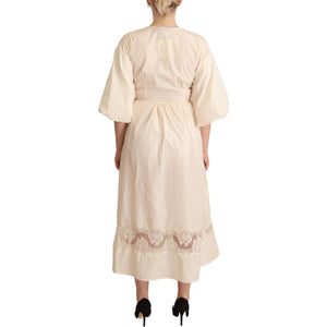 PINK MEMORIES Off White Short Sleeves Maxi A-line Wrap Dress