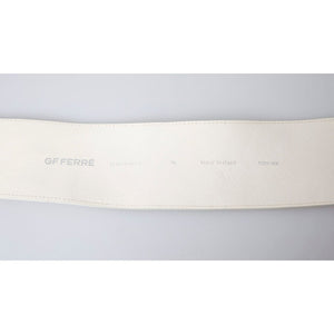 • GF Ferre Off White Waxed Cotton Wide Fashion Waistband Belt
