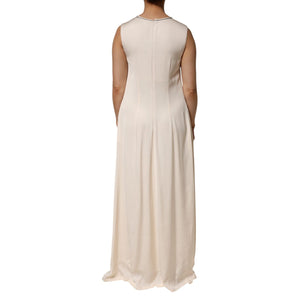 Peserico Beige Viscose Pleated Sleeveless Long Maxi Dress