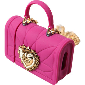 Dolce & Gabbana Pink Silicone Devotion Heart Bag Gold Chain Airpods Case