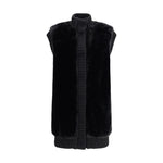 Long Vest in faux fur by Pinko, featuring a straight cut and ribbed knit details along the stand collar, concealed front opening, and armholes. Made from soft Aspen fabric with a faux fur effect, it offers a particularly pleasant and cozy feel.