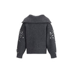 Pinko’s wool Cardigan features a large ribbed design and front zipper closure, giving it a modern and practical look. Applied rhinestones on the sleeves add a touch of sparkle and femininity, transforming the garment into an elegant and contemporary piece.