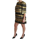 Dolce & Gabbana Polyester Black Gold Leopard Shift Mini Dress