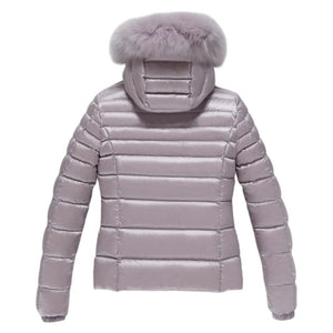 Wrap yourself in the fusion of luxury and comfort with this Regrigiwear women’s short down jacket. Crafted from premium nylon, this exquisite piece boasts a lush 100% feather padding ensuring warmth without the bulk. The fur-trimmed hood serves as a statement of your stylish sensibilities, while the zip fastening and side pockets deliver both form and functionality. Adorned in a majestic purple hue, it’s a garment designed for the bold and the beautiful.
