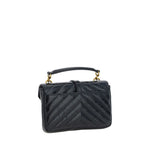 Saint Laurent signature leather Shoulder Bag, an accessory that combines elegance and functionality. The front closure with magnetic flap is enriched by the plaque detail with the iconic embossed YSL logo, a symbol of timeless luxury. The top zipper closure ensures practicality and security. The sliding chain shoulder strap with a removable flat leather detail offers versatility, allowing it to be worn on the shoulder or crossbody. The flat top handle adds a convenient option for carrying it by hand. The quilted-effect design and unique interior compartment lend a sophisticated and functional look, perfect for those seeking style and practicality in one accessory.