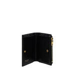 Calfskin Wallet by Saint Laurent, matelassé design, embossed iconic monogram plaque on front, snap-button closure, interior card slot and bill compartment, zippered slot pocket on top.