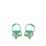 – Composition: 100% Silk – Inner: Leather – Insole: Leather – Sole: Leather – Square toe – Branded insole – Heel 6 cm – Top crystals detail – Adjustable back closure – Made in Italy – Gender: WOMEN –