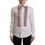 Dolce & Gabbana White Cotton Lace Long Sleeves Ruffle Collar Top Shirt