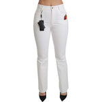 Dolce & Gabbana White Heart Flared Stretch Cotton Pants