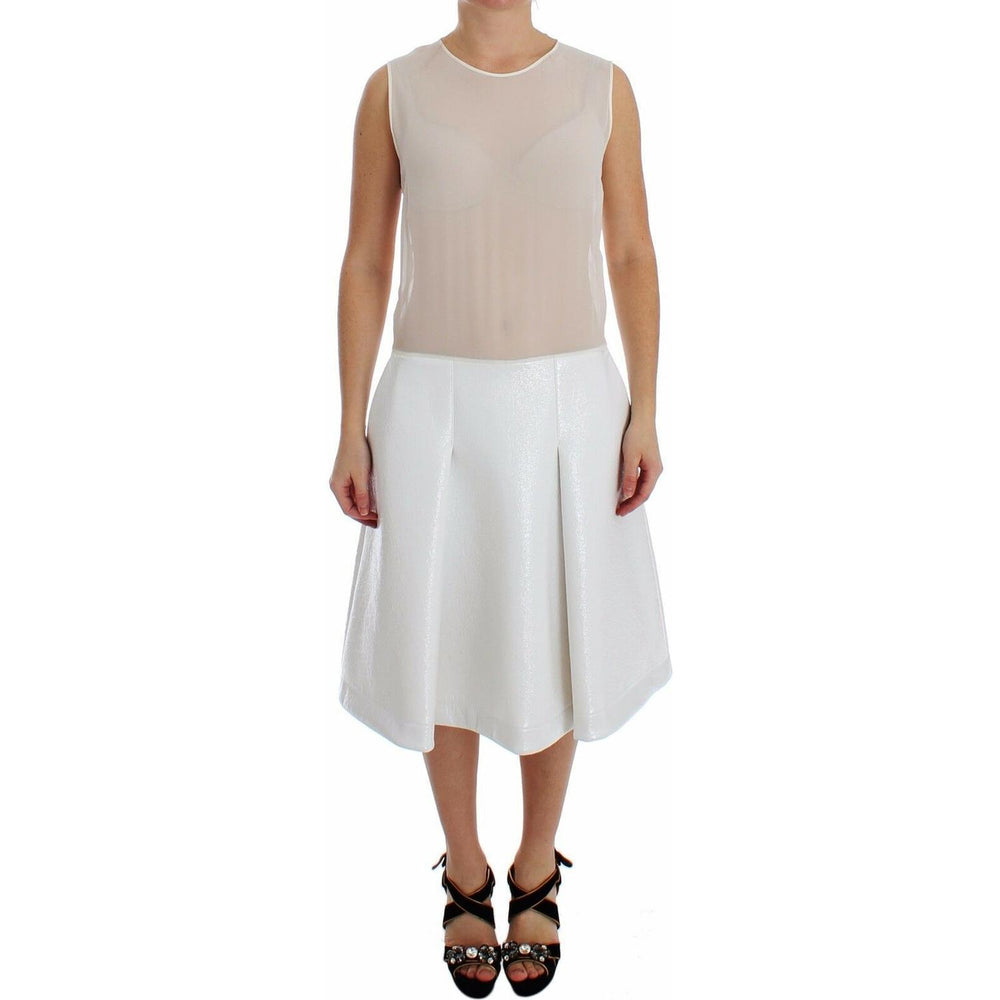 Koonhor White Pleated Bottom Tank Sheath Transparent Dress