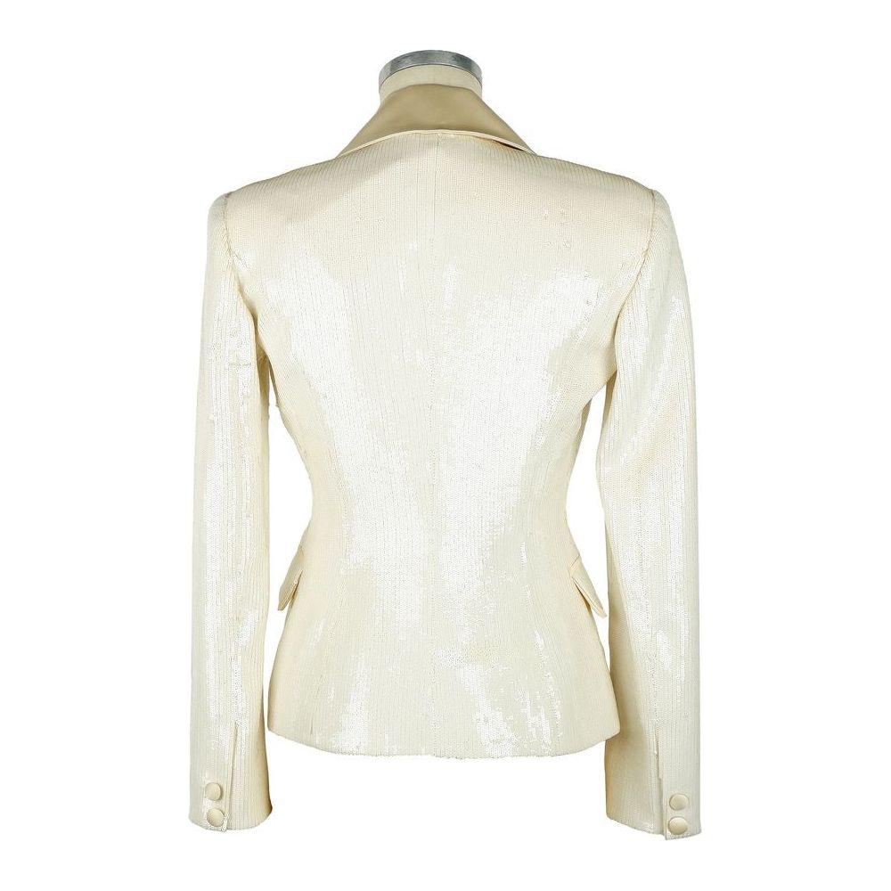 Infuse your wardrobe with the sparkling sophistication of Elisabetta Franchi’s classic jacket. Adorned with double-breasted sequins, this white sensation features a sharp pointed collar and a duo of front pockets—each detail meticulously crafted in Italy for the fashion-forward woman. Amplify your ensemble with unapologetic glamour that speaks volumes of your trendsetting style.