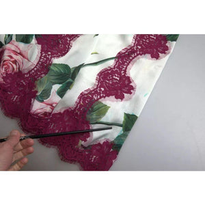 Dolce & Gabbana White Rose Print High Waist Midi A-line Skirt