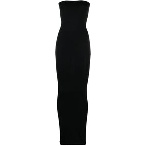 black stretch-design ribbed knit tube design elasticated band strapless sleeveless ankle-length elasticated hem unlined Abito lungo Fatal Size and Fit - LENGTH: 135.0 Centimetres. WAIST: 56.0 Centimetres. BUST: 56.0 Centimetres.