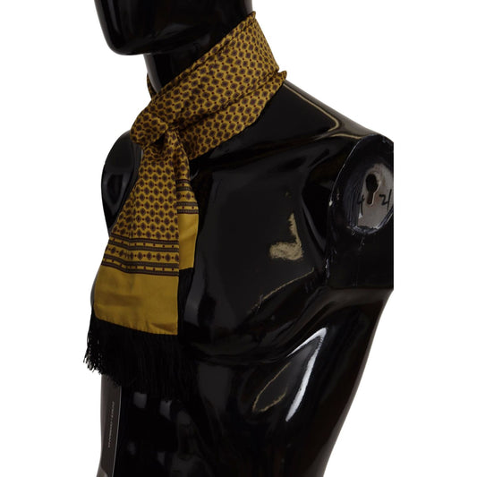 Dolce & Gabbana Yellow Patterned Silk Neck Wrap Fringe Scarf