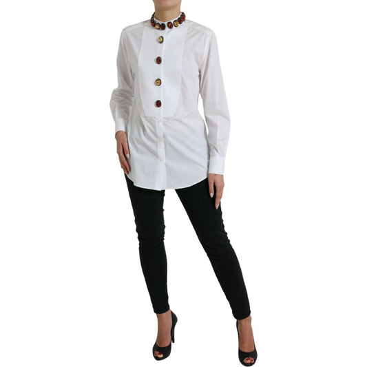 优雅水晶缀饰白色棉质上衣