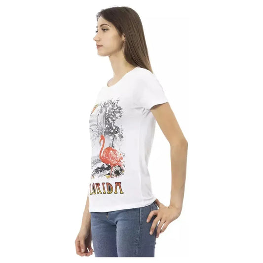 优雅的浅蓝色 T 恤,正面印有别致图案