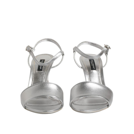 Dolce & Gabbana Silver Logo Ankle Strap Heels Sandals Shoes