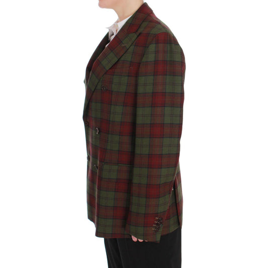 优雅格纹双排扣羊毛西装外套
